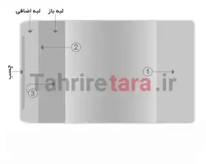 بعد از تنظیم کامل، قسمت اضافه را با چسب موجود در پشت جلد فیکس کنید. کافیست نوار چسب را جدا کرده و لبه تا شده را روی آن بچسبانید.