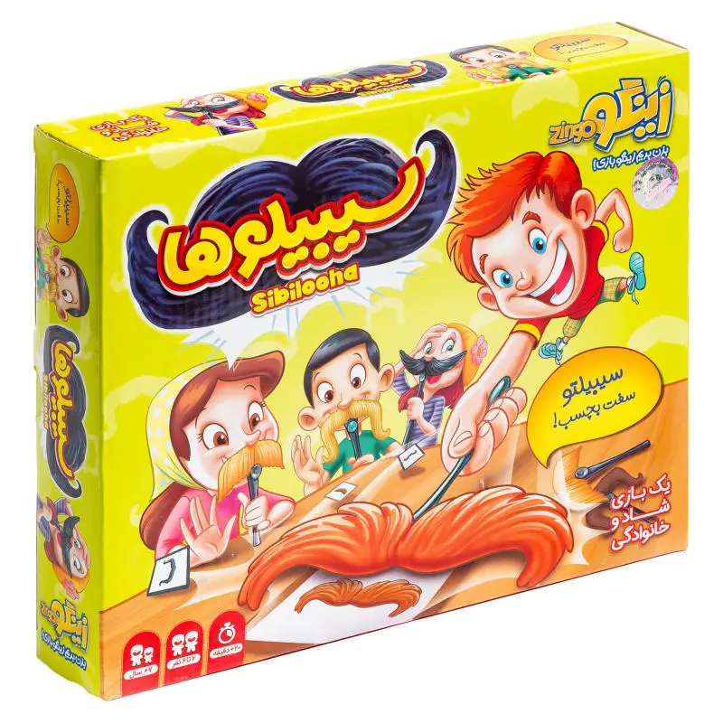 بچهها و بزرگترها از ۷ سال تا بزرگسال میتونن تو این بازی سرگرم بشن و کلی خوش بگذرونن.کجا میشه بازی کرد؟هر جایی که چند نفر بتونن دور هم جمع بشن؛ چه خونه، چه پارک، چه مهمونی یا مدرسه.هدف بازی چیه؟با پوشیدن سیبیلهای مختلف روی صورت و سرعت عمل بالا، باید خیلی سریع کارتهای سیبیل مشابه رو پیدا کنید و بهشون ضربه بزنید! مراقب باشید که اشتباهی دست به کارتها نزنید، چون جریمه داره!وسایل بازی شامل:۶ سیبیل دستهدار برای بازیکنان۳۲ کارت تصویری با سیبیلهای رنگارنگ و متنوعطرز چیدن وسایل:۱. به هر بازیکن یک سیبیل داده میشود تا روی صورتش بگذارد.۲. کارتها را یکی یکی وسط میگذاریم.۳. یک نفر نقش فروشنده را دارد و کارتها را به ترتیب رو میکند.نحوه بازی:هر بار کارت وسط انداخته میشود، بازیکنی که رنگ یا شکل سیبیل کارت را دارد، باید سریع دستش را روی کارت بزند.هرکس اشتباهی دست بزند، باید دو کارت جمع شدهاش را پس بدهد.بازی تا زمانی ادامه دارد که کارتها تمام شود و کسی که بیشترین کارت را جمع کرده باشد، برنده است.نکات مهم:سرعت و تمرکز بالا، کلید برد در این بازی است.مراقب باشید از شدت خنده زمین نخورید و به جای کارتها جای دیگه ضربه نزنید!یادتان نرود که عکس دستهجمعی با سیبیلها بگیرید تا همیشه یاد آن لحظات پر از شادی را داشته باشید.این بازی، ترکیبی از خنده، سرعت عمل و رقابت دوستانه است که هر جمعی را زنده و سرحال میکند. پس آماده باشید، سیبیلها را بگذارید و بازی را شروع کنید!